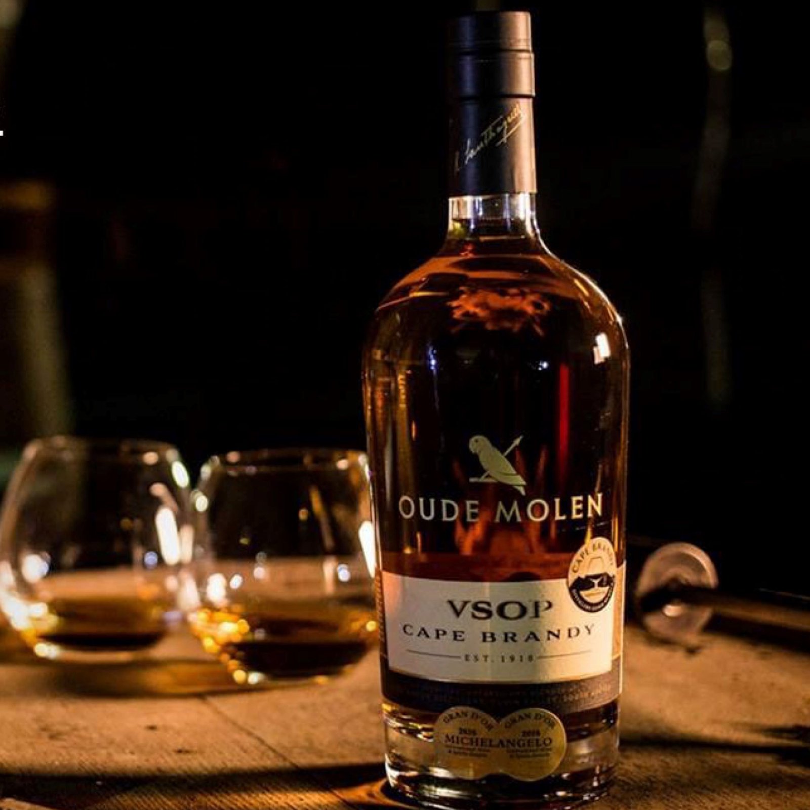 Oude Molen V.S.O.P. Cape Brandy อายุของการหมักบ่มบรั่นดีชั้น V.S.O.P. ของ Oude Molen จะหมักบ่ม 5 ปี หรือมากกว่าเท่านั้นเพื่อให้ได้รสชาติที่สมบูรณ์แบบ เมื่อเทียบกับบรั่นดี VSOP ของฝรั่งเศสที่หมักบ่มอย่างน้อยที่ 3 ปีเท่านั้น! หอมกลิ่นคาราเมล,ลูกพีชและซิตรัส ตามมาด้วยรสชาติที่กลมกล่อมของผลไม้แห้ง เครื่องเทศ ลูกเกด และรสถั่วออ่อนๆ ปิดท้ายด้วยความหวานอันยาวนานและอบอุ่น