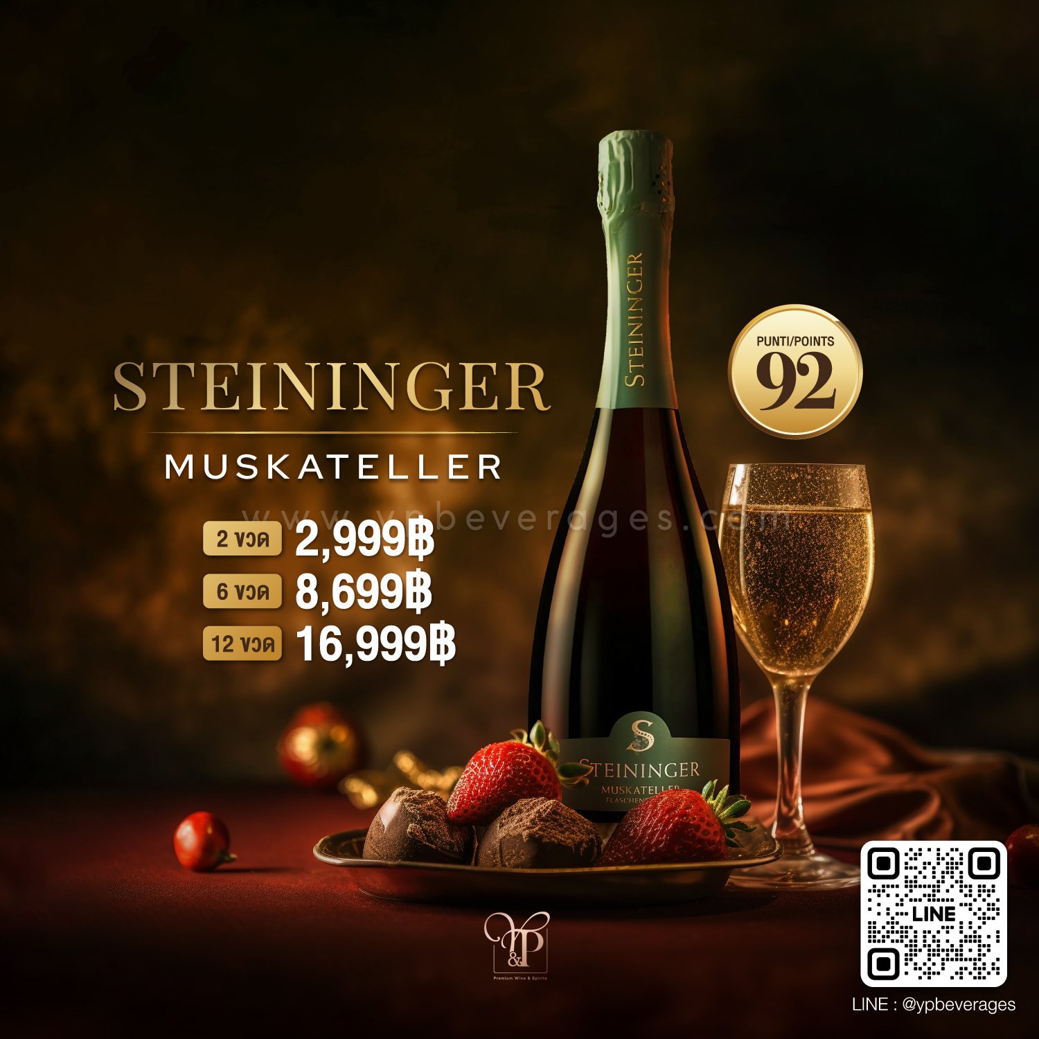 สปาร์คกลิ้งไวน์สีเหลืองอมเขียวสดใส STEININGER MUSKATELLER ที่มาพร้อมกับฟอละเอียดละออ กลิ่นหอมอ่อนๆ ของลูกจันทร์เทศ ตามด้วยโน๊ตของลิ้นนจี่และมะนาว เปิดมาด้วยรสชาติของน้ำผึ้งที่กระจายทั่วปากให้ความอร่อยจนน่าตกใจ รสชาติในตอนท้ายที่มาพร้อมกับ พีช และแร่ธาตุ หอมอร่อยจนวางไม่ลง
