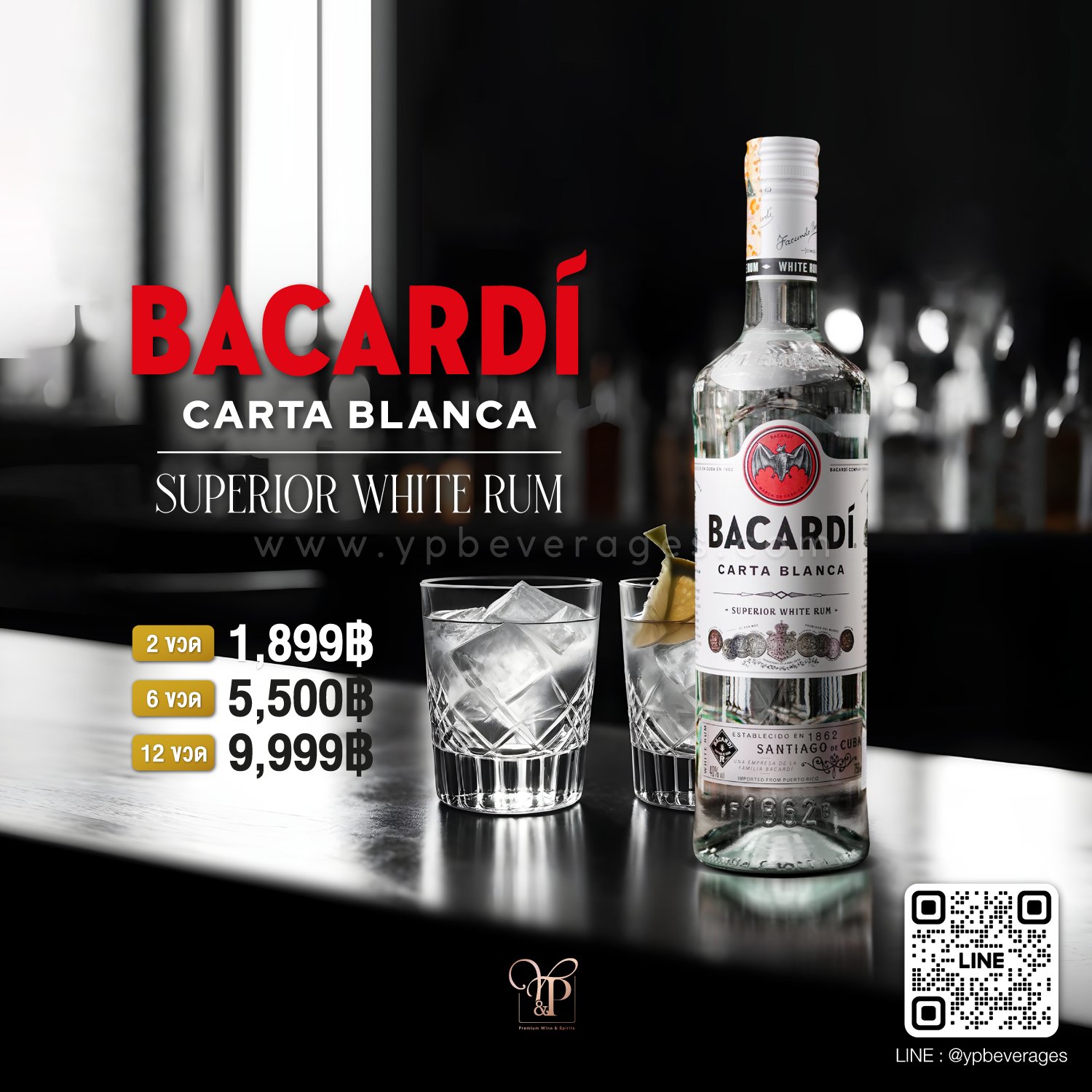 BACADI CARTA BLANCA RUM หนึ่งในรัมที่ได้รับความนิยมทั่วโลก!! จัดส่งฟรีทั่วประเทศ!