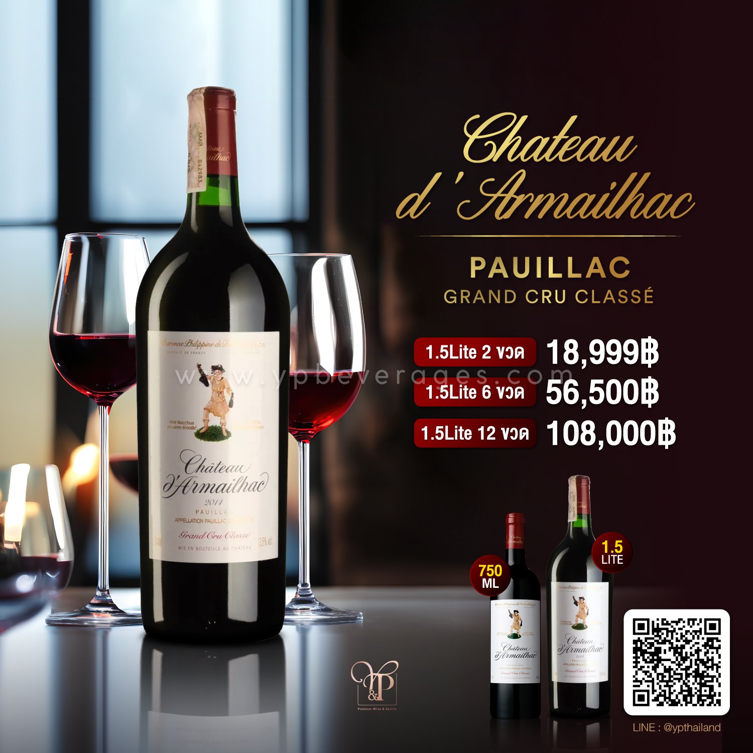 ไวน์ Château d'Armailhac (ตุ๊กตาเดี่ยว) ขนาด 1.5 ลิตร 2 ขวด