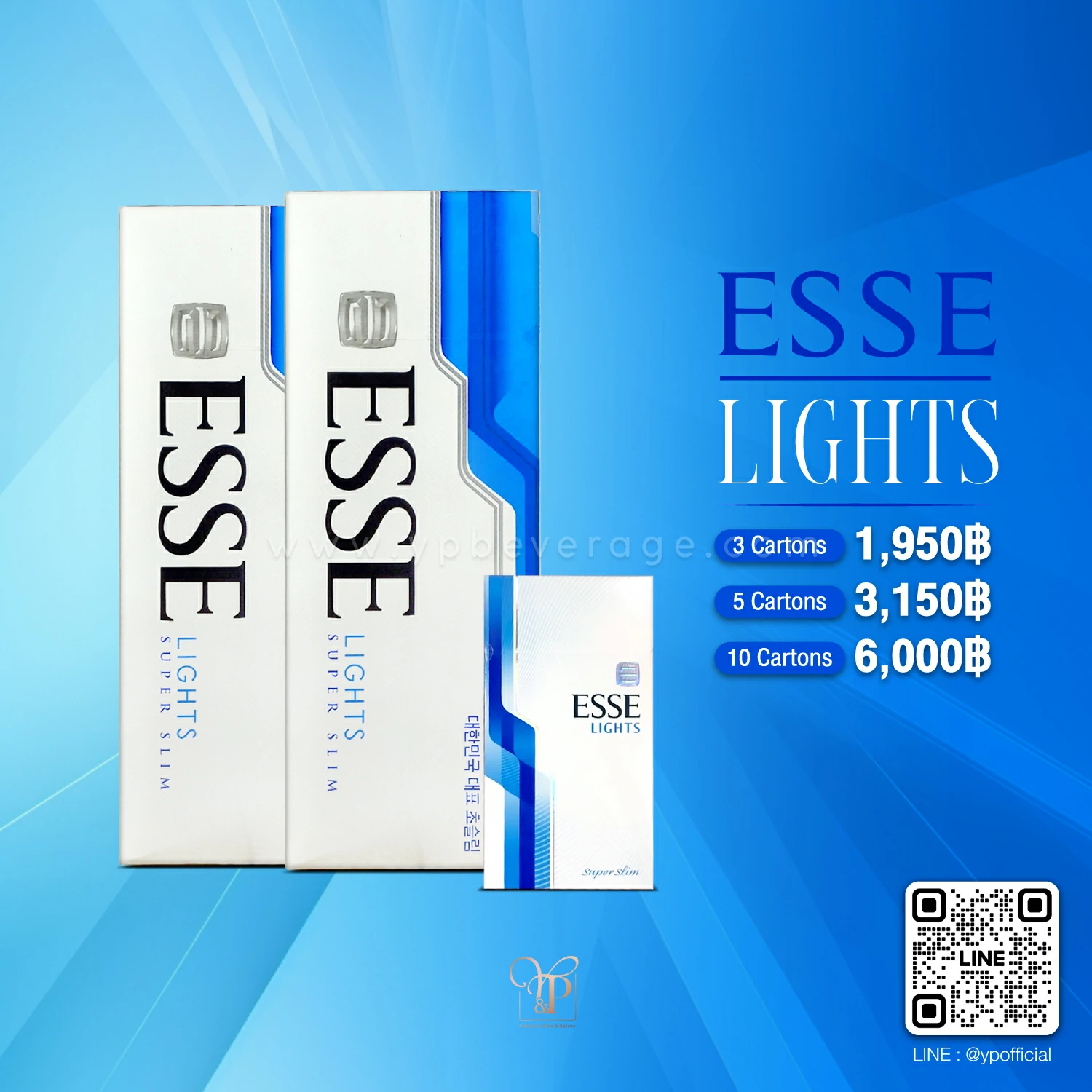 ESSE LIGHTS เป็นบุหรี่ที่มีรสชาติที่เบาและนุ่มนวลกว่า ESSE CLASSIC โดยถูกออกแบบมาเพื่อตอบสนองผู้ที่ต้องการบุหรี่ที่มีความเข้มข้นของยาสูบที่ลดลง แต่ยังคงรักษารสชาติของยาสูบแบบดั้งเดิม Esse Lights ให้รสชาติที่นุ่มและเบาลง ทำให้มีควันและความรู้สึกที่เบาสบายขณะสูบ บุหรี่รุ่นนี้เหมาะสำหรับผู้ที่ต้องการความรู้สึกที่เบาและนุ่มนวลของยาสูบ โดยไม่ต้องการความเข้มข้นหรือความหนักแน่นของรสชาติแบบบุหรี่ทั่วไป แต่ยังคงต้องการสัมผัสของยาสูบที่แท้จริง
