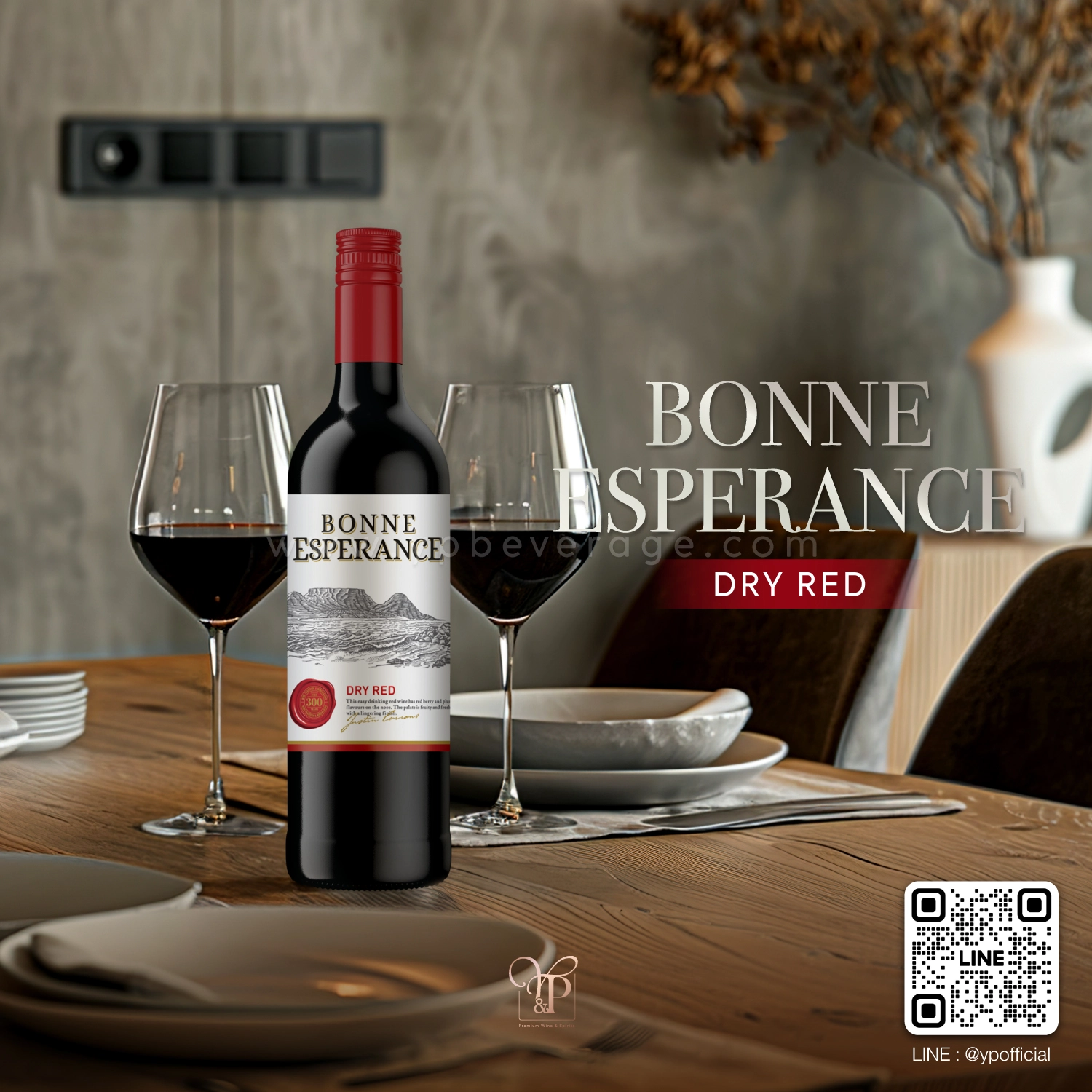 BONNE ESPERANCE DRY RED กลิ่นของแบล็กเบอร์รี่สุก,เชอร์รี่ตุ๋นและกลิ่นเครื่องเทศอ่อนๆ รสของลูกพรุนเข้มข้น,ช็อกโกแลตดำและกลิ่นวานิลลาเล็กน้อย จบด้วยรสนุ่มและแทนนินละมุน เนื้อไวน์มีน้ำหนักปานกลาง แทนนินนุ่ม ดื่มง่าย 🍽️ การจับคู่กับอาหาร เหมาะกับการดื่มคู่กับ: เนื้อย่าง หรืออาหารปิ้งย่าง,พาสต้าที่มีซอสมะเขือเทศ,ชีส,พิซซ่า,เนื้อแดงอบหรือย่าง