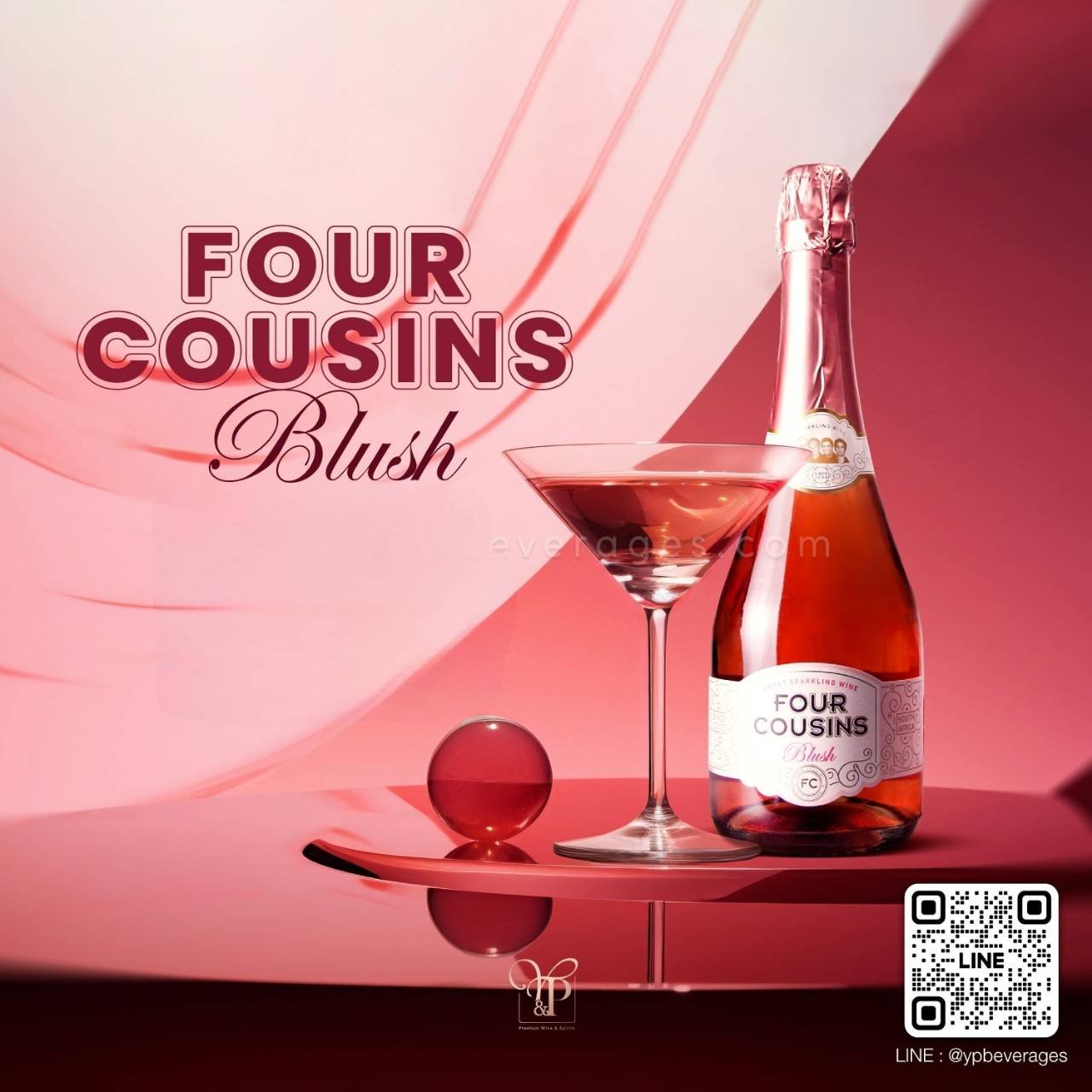 FOUR COUSINS SPLARKLING BLUSH สปาร์คกลิ้งไวน์กลิ่นสตอเบอร์รี่จากแอฟริกาใต้ 🍓🇿🇦 สปาร์คกลิ้งไวน์รสหวานขวดนี้ผลิตจากผลสตอเบอร์รี่และแอฟริคอต 🥂✨ หอมกลิ่นกุหลาบหรูหรา🌹รสชาตินุ่มนวลหอมอร่อยสดชื่น 🍓จบเบาบางอ่อนโยน แนะนำดื่มคู่ Appetizers, Snack & Desserts เข้ากันได้ดีมาก 🍰🍫 Everyday Wine ขวดนี้เปิดดื่มชิวๆได้ทุกวันหรือจะเปิดเฉลิมฉลองก็เริ่ด