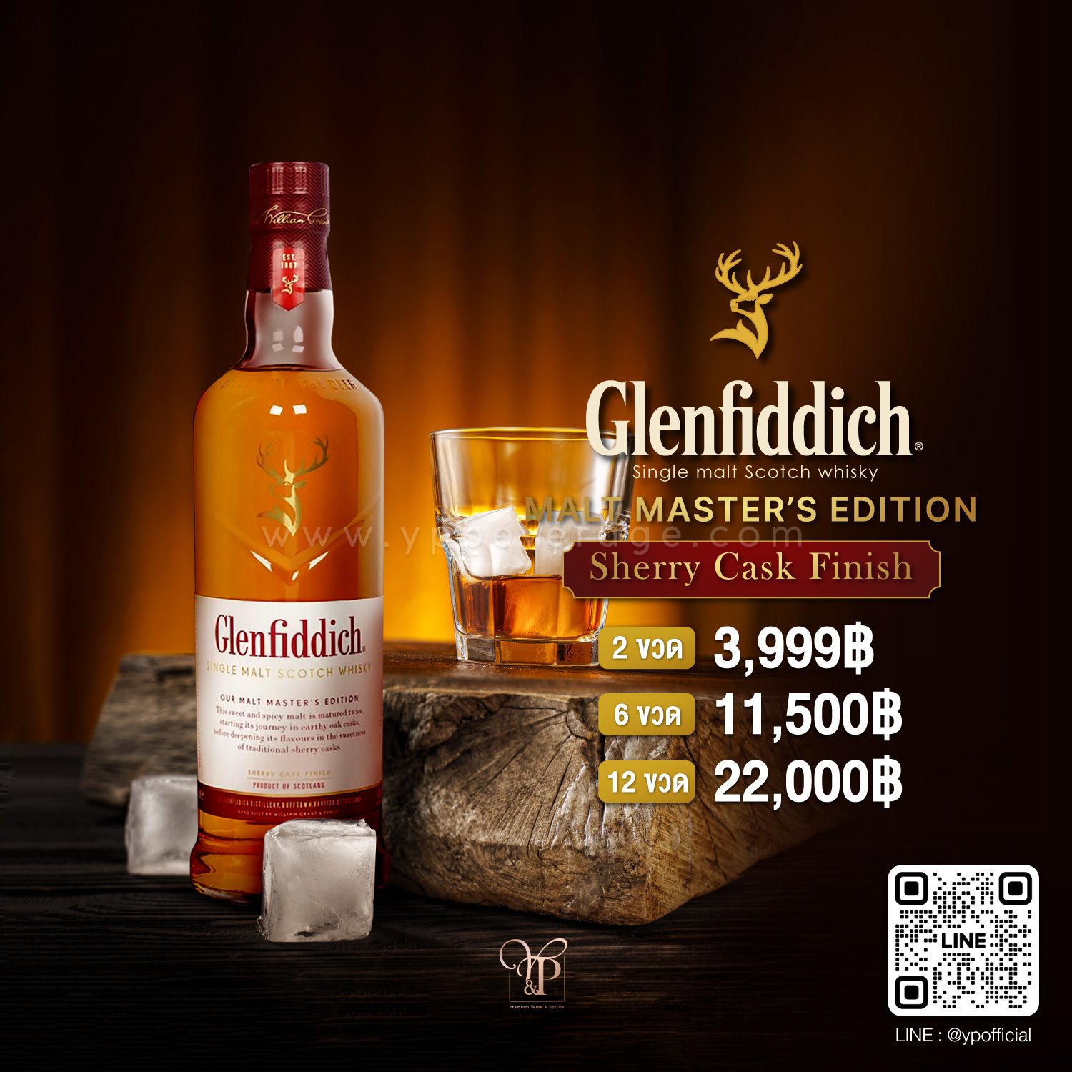 GLENFIDDICH MALT MASTER'S EDITION สีแดงทับทิมเข้ม กลิ่นดินเปียกและไม้ที่แช่วิสกี้ ผสมกับวานิลลาลึกและควัน รสชาติเข้มข้นด้วยรสชาติหลายชั้นจากการบ่มสองครั้ง เริ่มจากรสเชอร์เบทและเครื่องเทศ ต่อด้วยพลัม เชอร์รี่ อัลมอนด์คั่ว และเค้กผลไม้ จบนุ่มนวลและกลมกล่อม วานิลลาหอมลึก รสชาติเข้มด้วยเครื่องเทศและนุ่มด้วยพลัม อัลมอนด์คั่วให้สัมผัสเล็กน้อยก่อนจบด้วยความนุ่มนวลในปาก