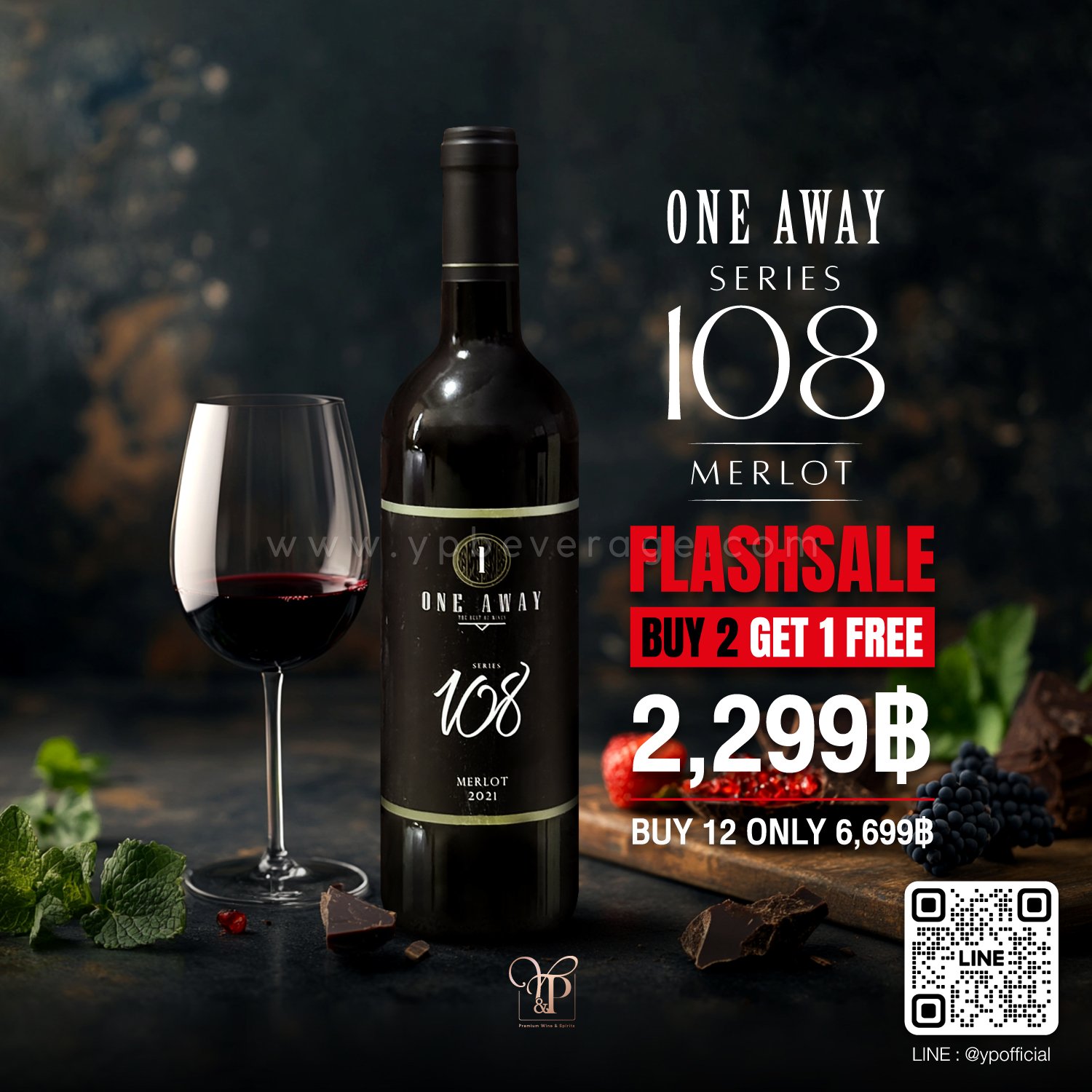 ONE AWAY SERIES 108 MERLOT ไวน์สีแดงเข้ม รสชาติผลไม้สีแดงเช่นเชอร์รี่,พลัมและราสเบอร์รี่